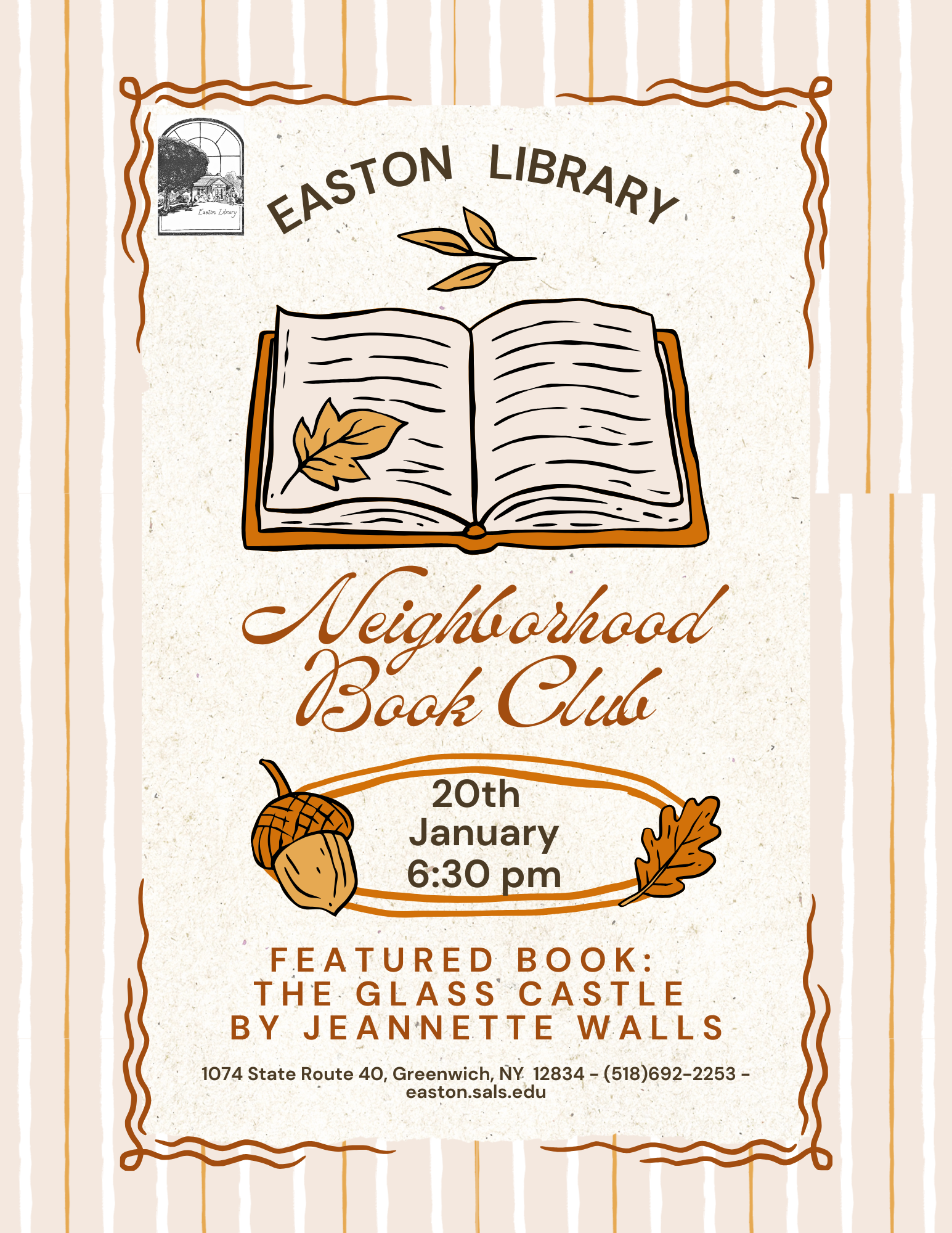 Comments Off on The Neighborhood Book Club will meet on Tuesday, January 20, at 6:30 pm to discuss the non-fiction title “The Glass Castle” by Jeannette Walls. All are welcome to join.