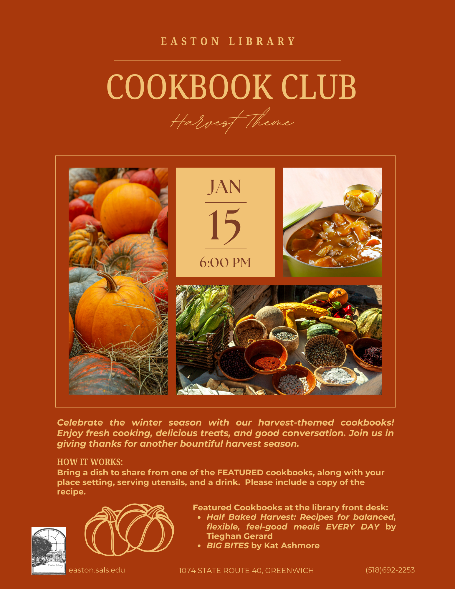 Comments Off on The Cookbook Club will meet on Thursday, January 15, at 6 pm. Let’s try new harvest recipes. New members are encouraged to join!