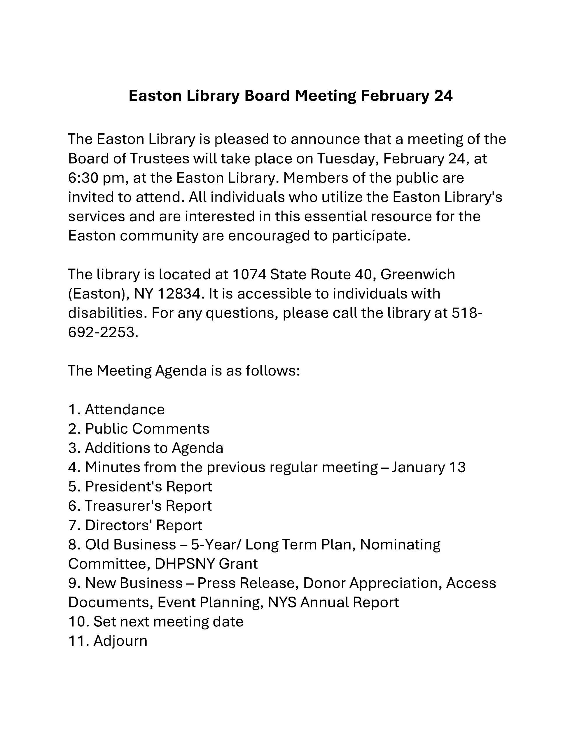 Comments Off on There will be a board meeting on Tuesday, February 24, at 6:30 pm.