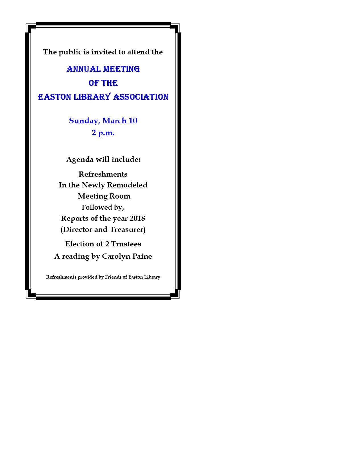 Annual-Meeting-Advertisement-for-Library-Circulation-Desk-2019 February 12, 2019 by Jennifer DeCarlo ← Previous Image Next Image →