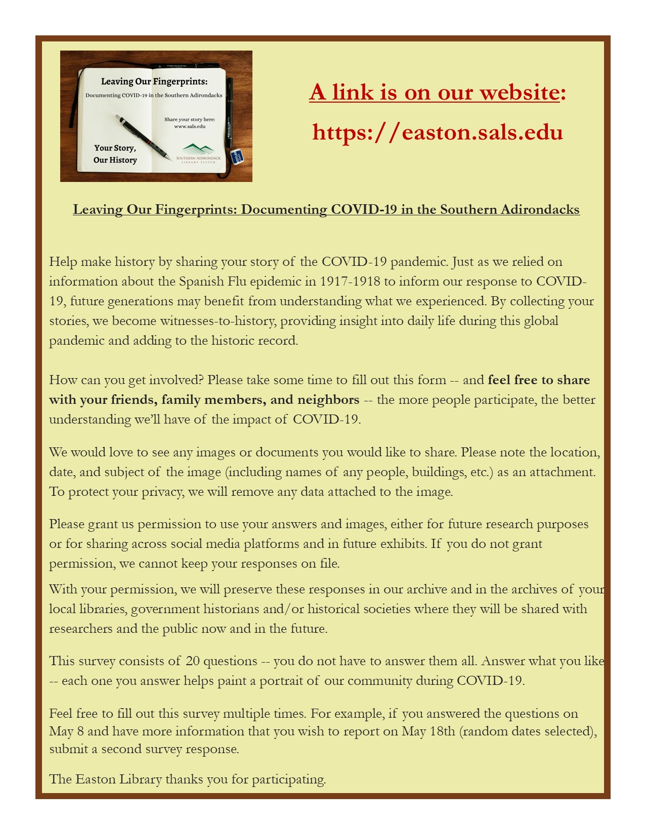 Leaving-Our-Fingerprints_COVID-19-Flier June 2, 2020 by Jennifer DeCarlo ← Previous Image Next Image →