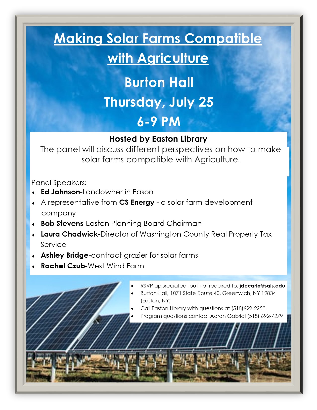 Making-Solar-Farms-Compatible-with-Agriculture-flier-July-25-2019 July 6, 2019 by Jennifer DeCarlo ← Previous Image Next Image →