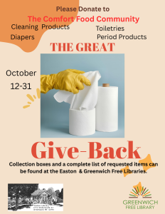 Please donate to The Comfort Food Community October 12-31. The library is accepting: